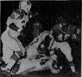 With a year’s head start on their opponent, Dallas was superior, scoring first on a touchdown run of 15 yards by L.G. Dupre, then adding another in the second quarter on a pass from Eddie LeBaron of 14 yards to flanker Frank Clarke. The Vikings then countered with an 80 yard drive culminating in the first touchdown (albeit a preseason one) in team history as a pair of castoff vets connected  on a 14 yard pass, with George Shaw finding back Hugh McElhenny. A 36 yard pass from Shaw to Paul Winslow highlighted the drive. Minnesota’s special teams apparently hadn’t been prepared yet, as the extra point try was blocked. As is common in exhibition contests, a second Cowboy quarterback, Don Meredith, took over and after a fumbled punt drove his team to another score, this time a 1 yard run by Amos Marsh. This gave Dallas a 21-6 halftime lead. Another lost Viking fumble set up the only score of the third quarter, a 15 yard field goal by Allen Green. Norris Stevenson caught a 32 yard touchdown pass from Meredith to open the final quarter, upping Dallas’ lead to 31-6.